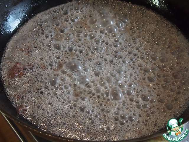 Вылить получившийся "соус" на мясо. -