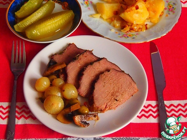 Рецепт «Говяжья вырезка с грибами и оливками»:
