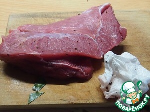 Мясо натереть этой смесью и оставить на два-три часа или на ночь. Затем с помощью салфетки убрать куски перца и лаврового листа с мяса.