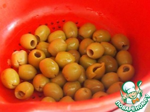 Затем в кипящую воду бросить оливки и варить на среднем огне 10 минут, чтобы избавить их от лишней соли. Затем откинуть на дуршлаг и промыть холодной водой.