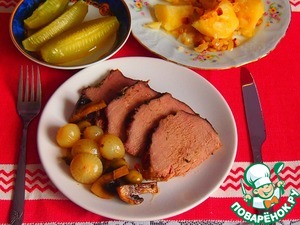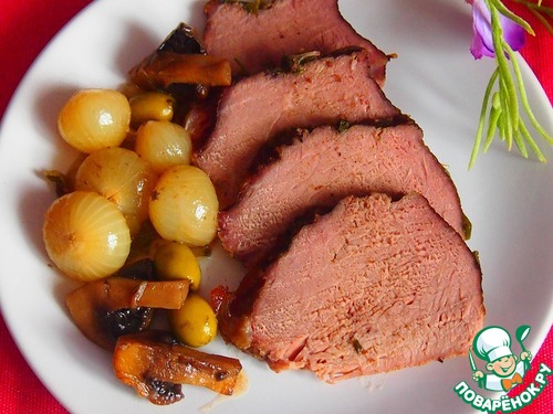 Рецепт «Говяжья вырезка с грибами и оливками»: