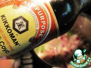 • Влить соевый соус Kikkoman.