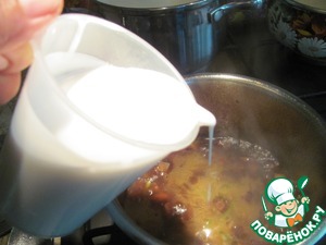 • Влить жидкие ингредиенты.