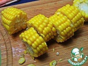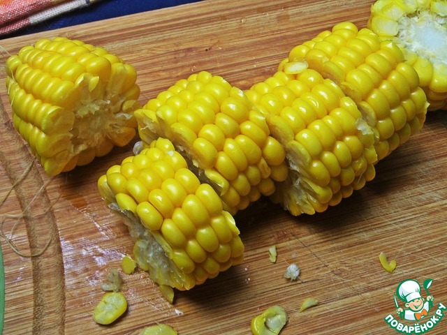 Кукурузу при желании отварить или воспользоваться консервированной.