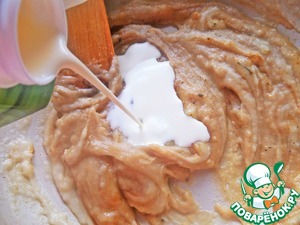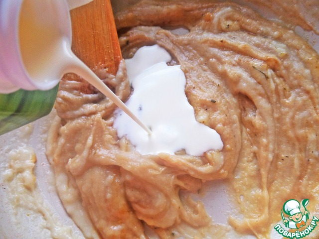 К этому времени сварилась картошка с бататом. Добавить горячее молоко.