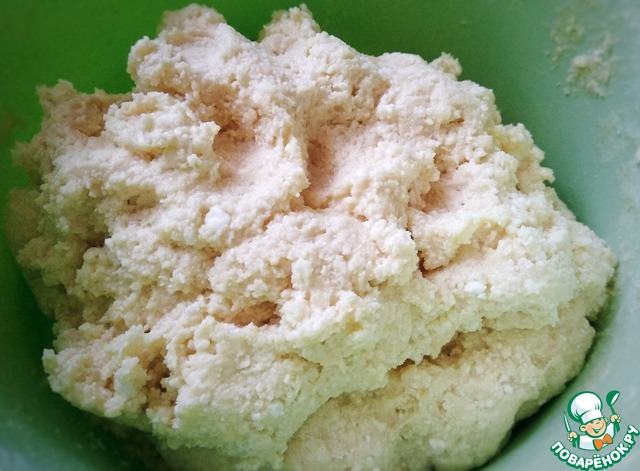 Затем к тесту добавим муку и соду + уксус ( у меня в этот раз разрыхлитель - разницы никакой). Тесто должно липнуть к рукам. Крутым быть не должно. На этой стадии вы так же можете добавить ванилин, мак, орешки и т. д... я обошлась в этот раз безо всего.