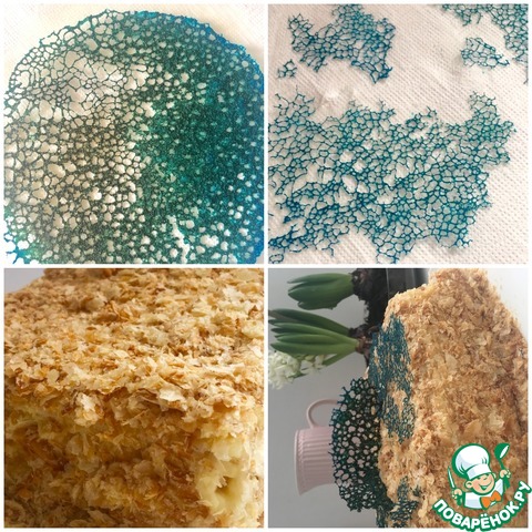 "Крутой" декор за 5 минут из минимума продуктов. Декор подходит для оформления блюд сразу перед подачей. Очень хрупкий. При контакте с жидкостью быстро отсыревает. Как ведет себя на креме не знаю. Еще не пробовала.