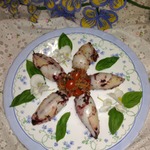 Для придания блюду более изысканного вкуса, сбрызнуть кальмары белым вином. -