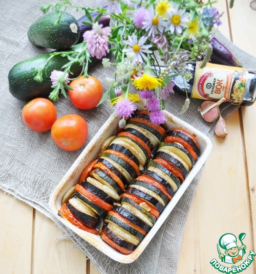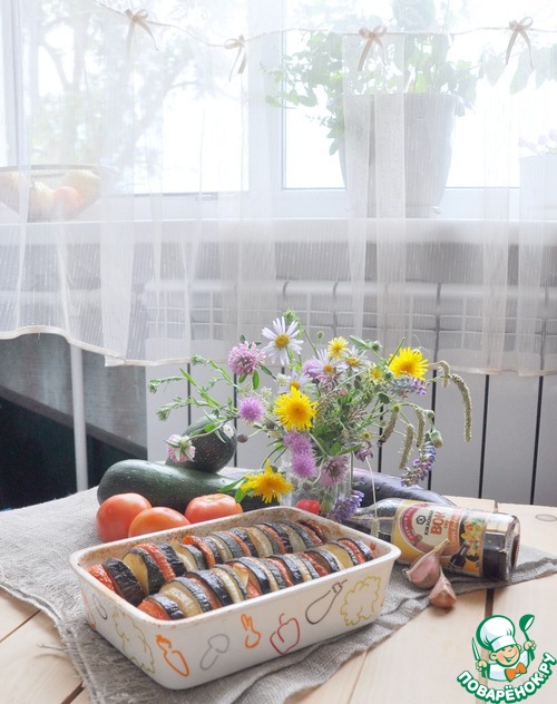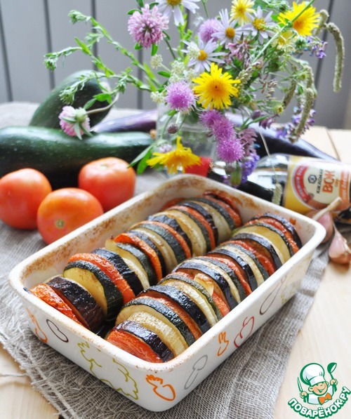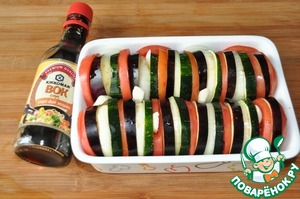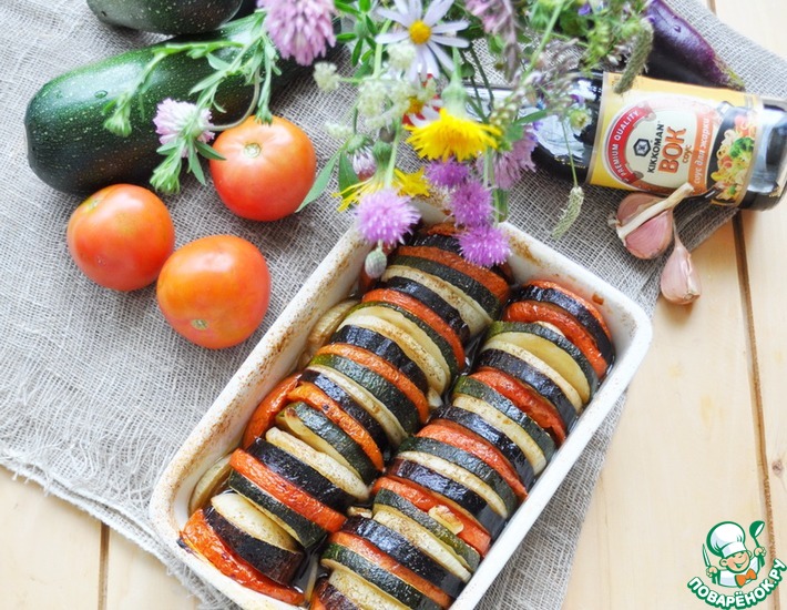 Тиан - это название глиняной посуды, в которой готовятся одноименные блюда. Бывают они и овощными, и мясными, овощные готовят из помидоров, баклажанов и кабачков. Блюдо получается очень насыщенным и ароматным. Я решила внести в рецепт любимую восточную нотку - соевый соус и кориандр. Отсутствие необходимой посуды вполне можно заменить обычной керамической формой для запекания, мне, как раз, такая пришла вчера - подарок с любимого "Поварёнка". Блюдо универсально, его можно есть и горячим, и холодным; в качестве закуски, гарнира или самостоятельного блюда.