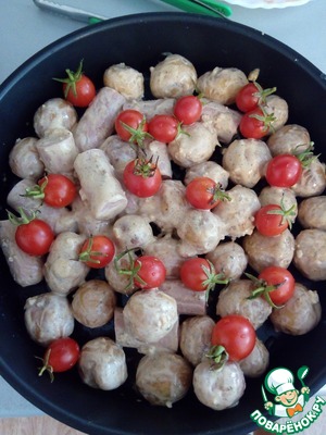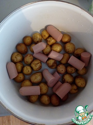 Рецепт «Картофель, запеченный с помидорами и сосискамм»: