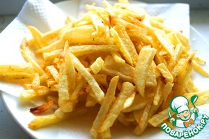 Обжаренный картофель выкладываем на бумажные салфетки для удаления лишнего жира.
