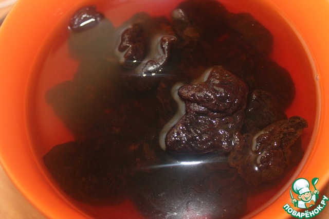 Чернослив промоем и зальем горячим черным чаем. Даем постоять полчаса.