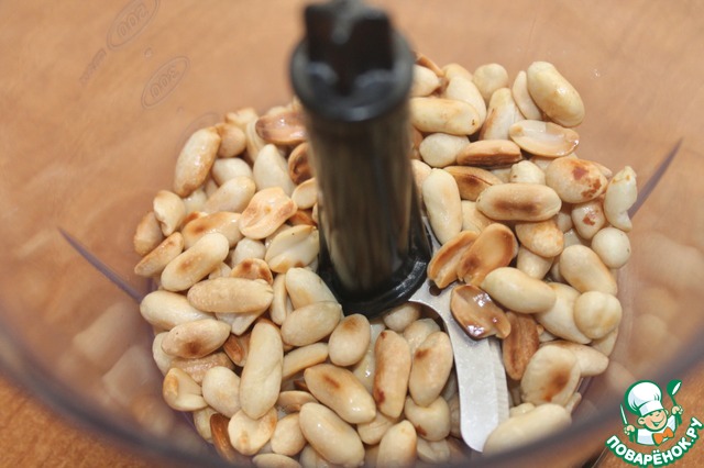 Арахис поджариваем на сухой сковороде до румяности и измельчаем в блендере.