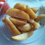 Картофель у нас небольшой, поэтому режем его крупными дольками, на 4 части. Если мелкий - половинками.