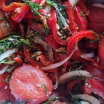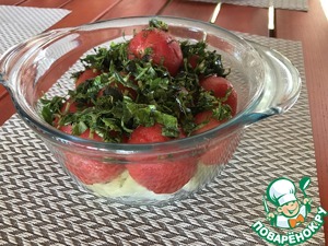 .. сверху очищенные помидоры и мелко нарезанную зелень..