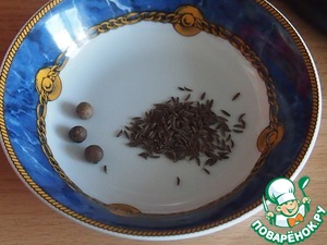 • Бросить в кастрюлю 3 горошины душистого перца и тмин. Варить 60 минут.