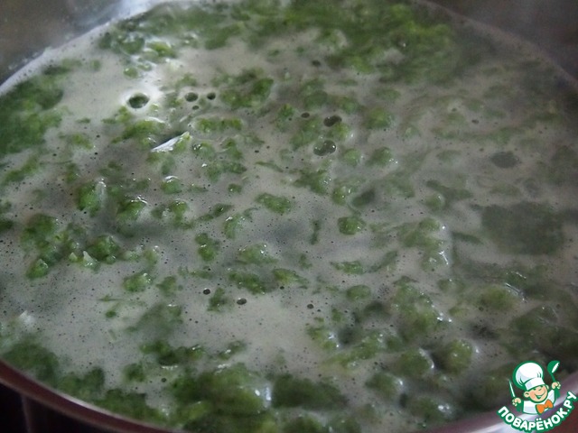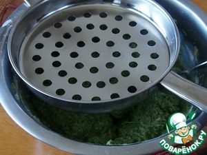 Рецепт «Шпинатные галушки с мясом и брынзой»: