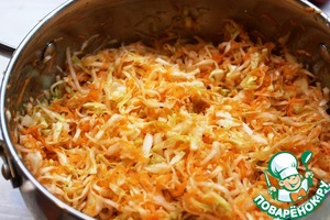 Соединить капусту и морковь, добавить 5 ч. л. соли, перемешать и помять руками, чтобы овощи пустили сок.