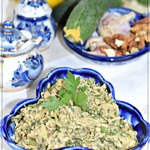 Тщательно перемешать ореховый соус и натертые огурцы. Важный момент (!). Если Вы уже привыкли к большому количеству зелени в рационе, добавьте в соус укроп и мяту в количестве до 100 грамм (а это о-о-очень большой пучок) – тогда соус получится даже более зеленым, чем на этом фото (здесь 50г. укропа и 10г. мяты). Если же Вы еще не привыкли к большому количеству сырой клетчатки в меню, мелко нарежьте приемлемое количество укропа и мяты к огурцам и добавьте чуть-чуть в соус. Тогда огуречно-ореховый дип будет белее (как на следующих фото)
