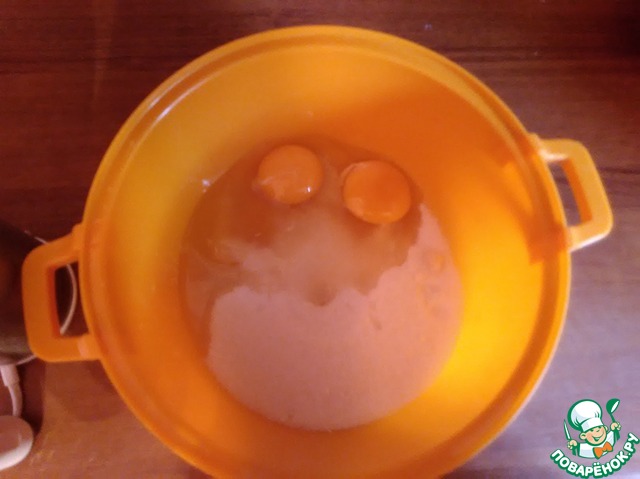 Яйца растереть с сахаром добела. Я для этого использую миксер.