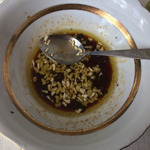 Соедините соевый соус,2 капли соуса табаско, базилик, оливковое масло.