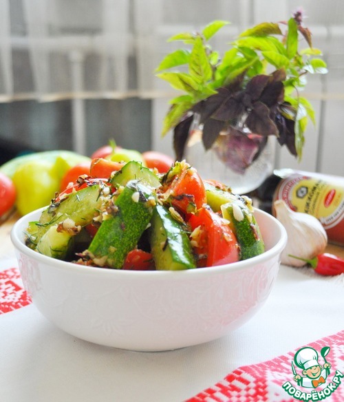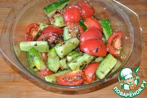 Рецепт «Закуска из маринованных помидоров и огурцов»: