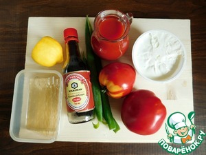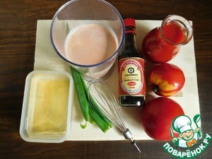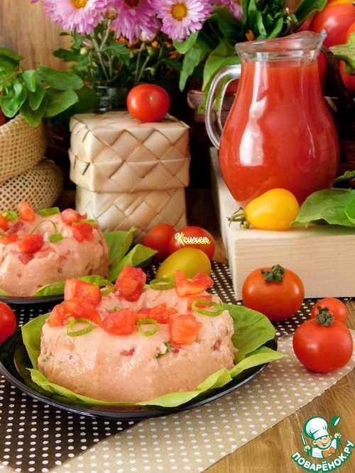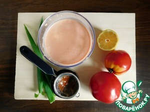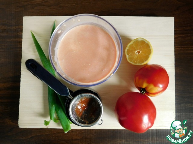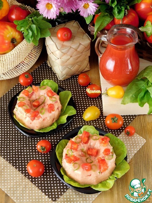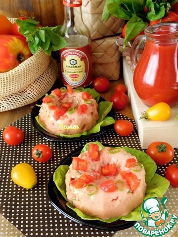 В разгар созревания томатов предлагаю полакомиться необычным муссом - закусочный томатный мусс с добавлением зеленого лука и сладкого соевого соуса ТМ Kikkoman.