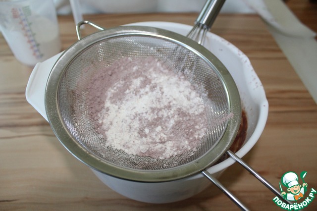 • Разрыхлитель, Пудинг и муку перемешать вместе. Просеять и постепенно добавить в тесто.