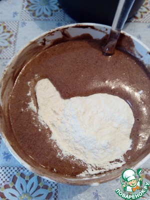 Затем так же аккуратно, вводим муку. Все тщательно перемешиваем.
