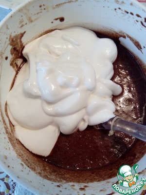 В шоколадную массу вводим белки и аккуратно перемешиваем.
