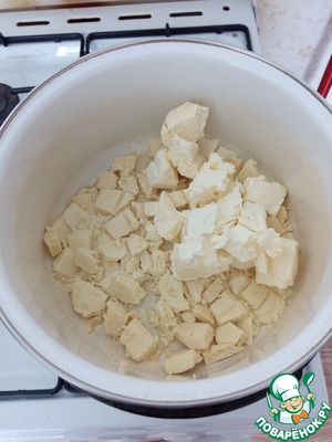 Затем всыпаем стружку, перемешиваем и снимаем с огня. Даем не много остыть, либо же можете остудить полностью.
