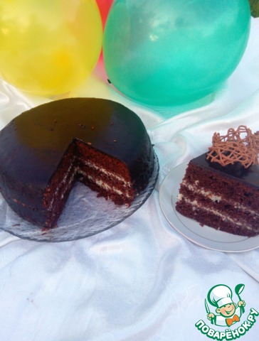 Каждый корж обильно промазываем кремом. Последний корж я не смазывала, т. к покрывала торт глазурью. Убираем в холодильник на несколько часов, до полного застывания крема.