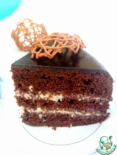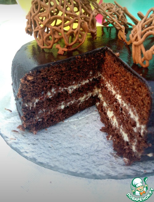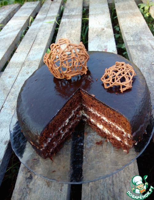Поливаем теплой глазурью торт. Убираем в холодильник на ночь.