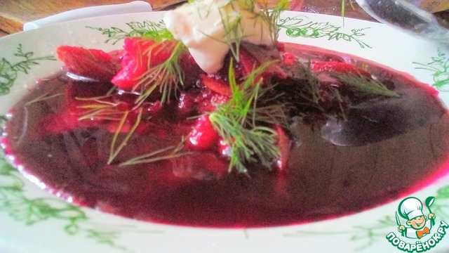 Заправляем в тарелке наш борщ свежей сметаной и больше ни в каких дополнениях он не нуждается.