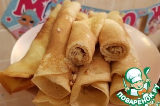 Такую процедуру проделываем с каждым блинчиком, укладывая их друг на друга. Все наше лакомство готово! Приятного аппетита!