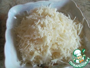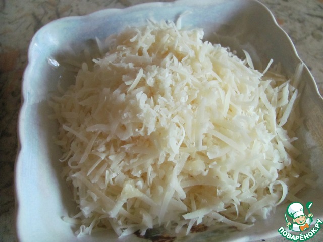 Пармезан натереть. Лучше взять сыр не очень сухой.