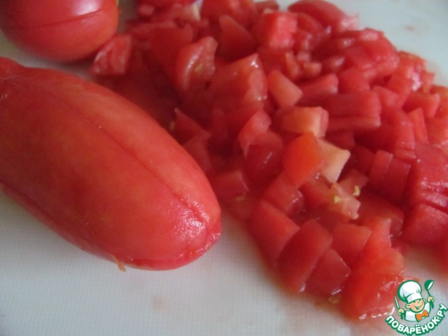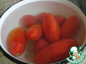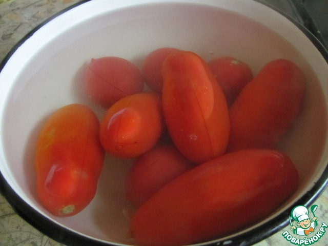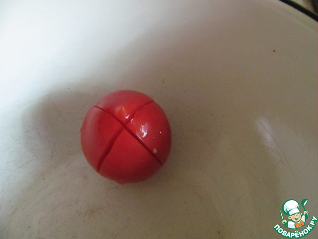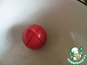 Помидоры надрезать крест на крест. Сложить в посуду.