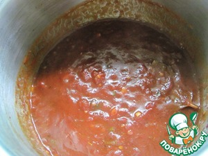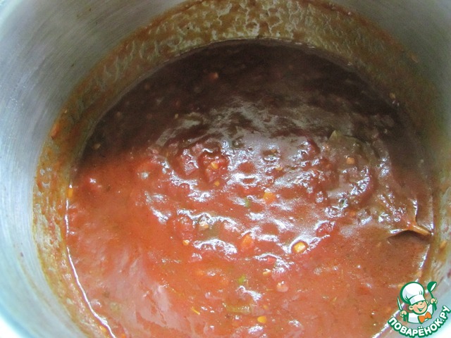 Варить соус, помешивая, примерно 30 минут. Соус должен увариться в 2,5-3 раза. Попробуйте. Доведите до вкуса (посолите, добавьте сахар, перец).