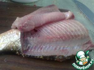 резать нужно на расстоянии не более 3-5 мм., тогда мелкие косточки секутся и получается почти чистое филе...