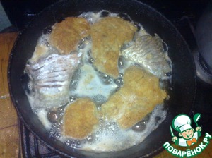 • Поочередно окунаем филе = мука, взбитое яйцо, панировочные сухари.
