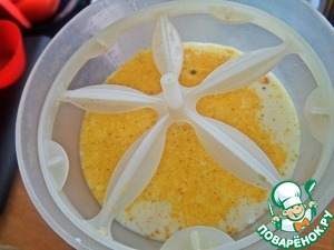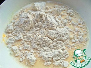 Делаем жидкое тесто. Я взбивала молочную смесь в шейкере.