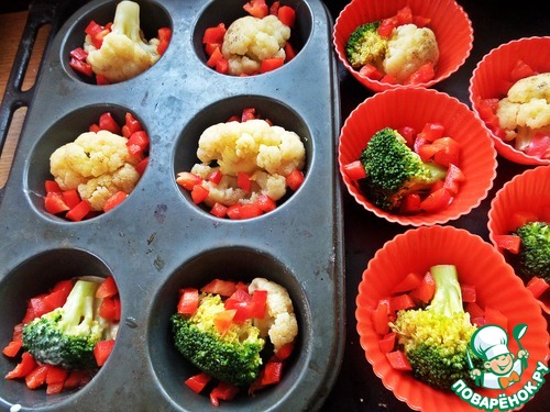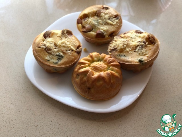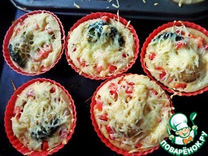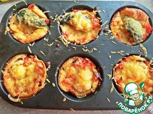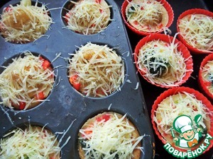 Залить тестом примерно по 3-4 ст. л. на порцию. Поставить в духовку при 180*.