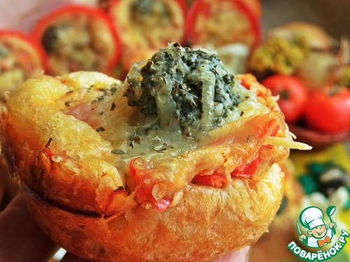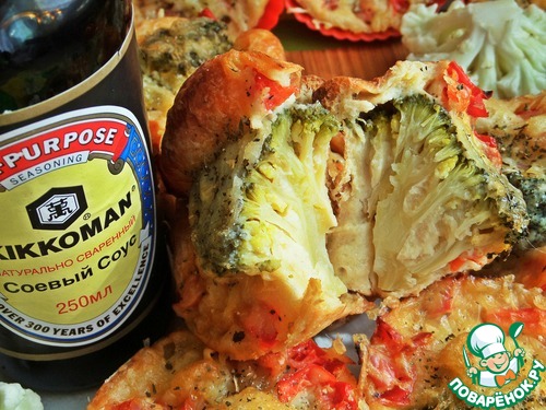 В такие румяные булочки можно спрятать любые овощи. Некоторые из них нужно слегка подготовить, а вот сладкую паприку вводим в тесто сразу. Не хотите овощей, воткните сосиски. Тесто тут играет роль придания формы. По вкусу напоминает заварное. Удобно на перекус в школу, на работу, даже с кофе вкусно!