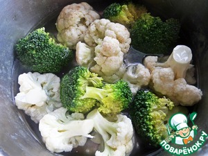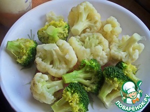 Вначале готовим начинки. Отделить от основания соцветия капусты.