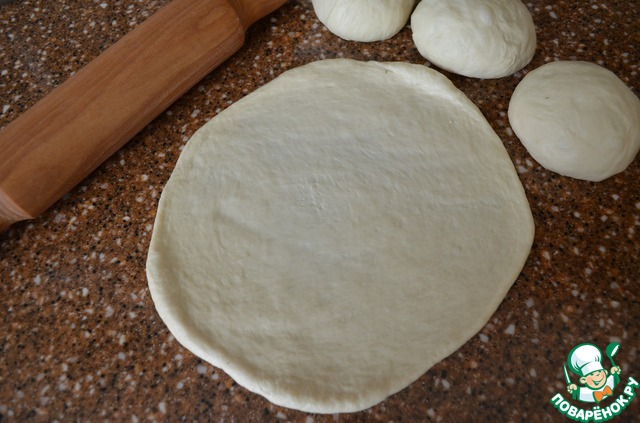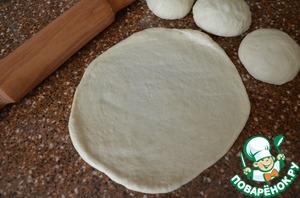 Затем раскатать колобок в тонкий круг, 0,5 см. толщиной. -