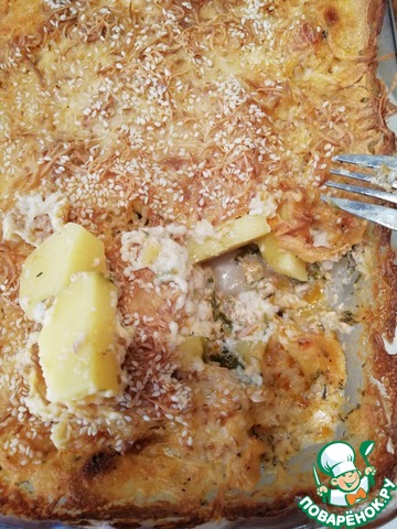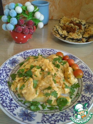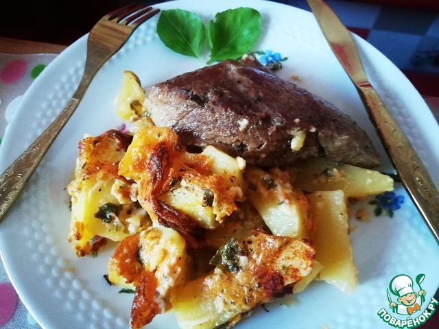 У меня специфическая духовка, она не очень держит жар, поэтому картоху всегда готовлю под фольгой. В прошлый раз получилось совсем жидко, поэтому сегодня, когда снимала фольгу, добавила крахмала, перемешала и отправила обратно румяниться. Получилось отлично) Спасибо за рецепт, по вкусу даже не заподозрить, что это так просто и бюджетно)) Оценили даже те, кто к колбасному сыру относится скептически.