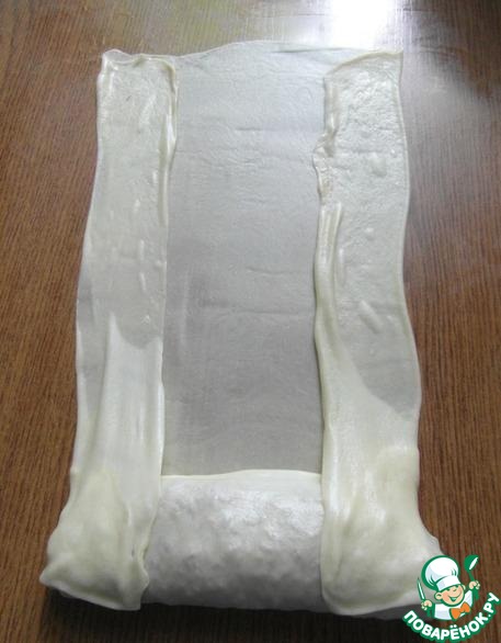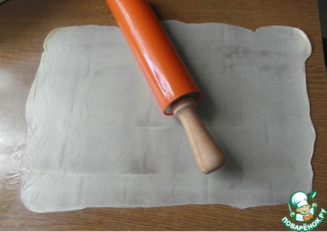 Раскатываем пласт так тонко, насколько можно... как папиросная бумага... ничего если порвется... не страшно...