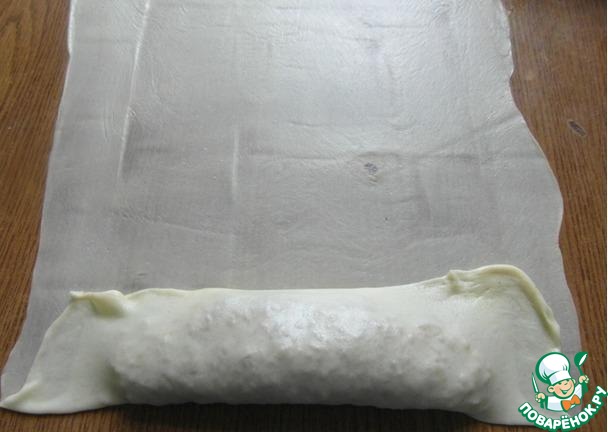 -кладем начинку на раскатанное тесто...