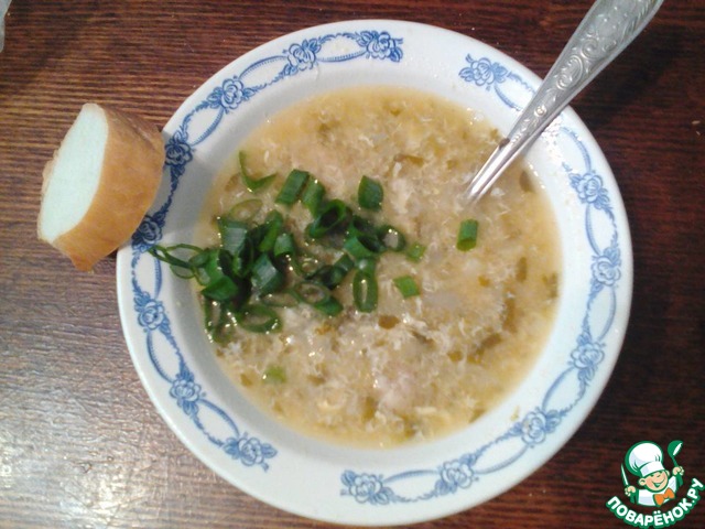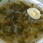 Наш суп готов. Подаем с отварным яйцом и сметаной.