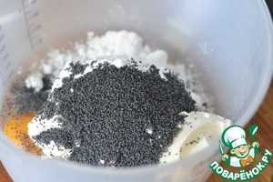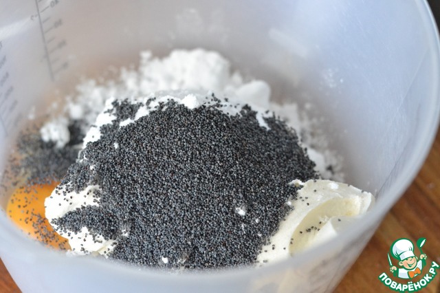 "Смешать маскарпоне с сахарной пудрой, маком и ванильным сахаром."